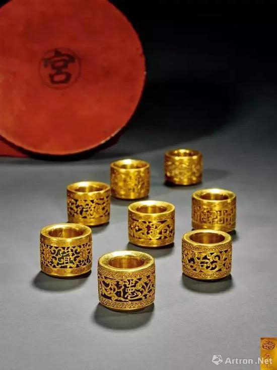 为制造一个合用的扳指,乾隆皇帝可以在外出避暑之时,连续七次来回传递命令以及扳指实物,要求工匠修改。御用扳指儿上面,经常有御题诗、诗意画和宫廷专用纹饰等带有浓厚人文气象的雕刻。这类扳指儿是当时技艺最高工匠的倾心之作,也是当时宫廷文化和皇帝本人气质爱好、文化理想和审美品位的集中表现。不过,这一类的扳指儿儿数量十分有限。