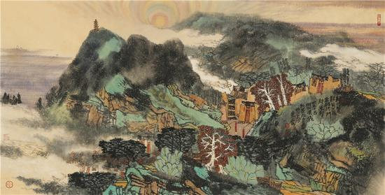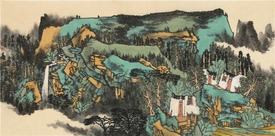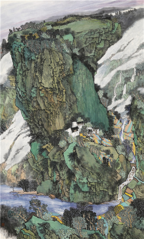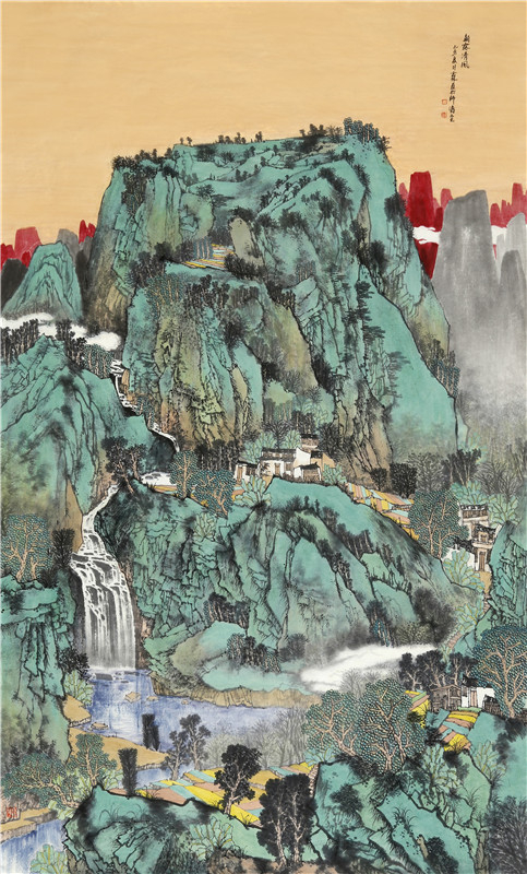 《紫气起万壑》 240×145cm 2019年 青绿山水