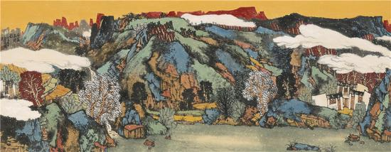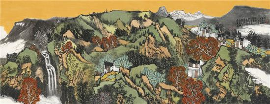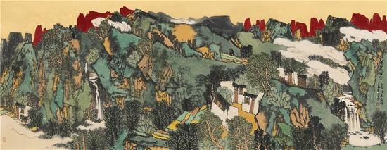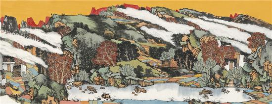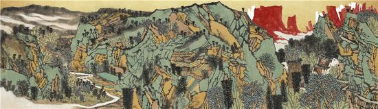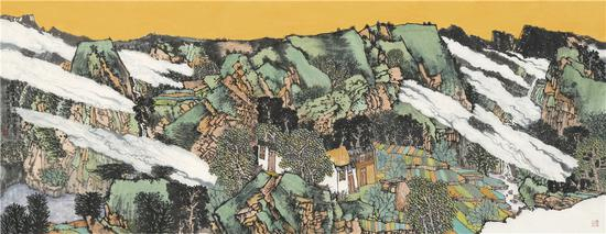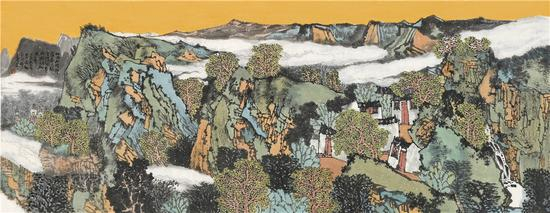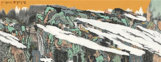 《万里祥云入画图》136×68cm 2019年 金碧山水