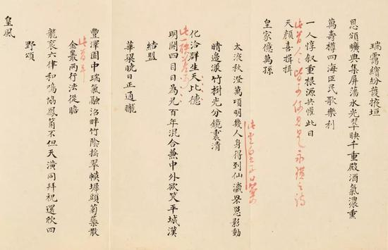 ▌乾隆御书《四得续论》原稿及再稿两张及御制诗《迴跸至御园之作》手稿