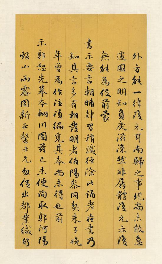 “前示郭恕先摹本《辋川图》,兹已未便询取,郭河阳《溪山雨霁图》,新正馨士兄匆促出都,业缄行笥,亦复无因假观,此事自关眼福也。”(第1通)
