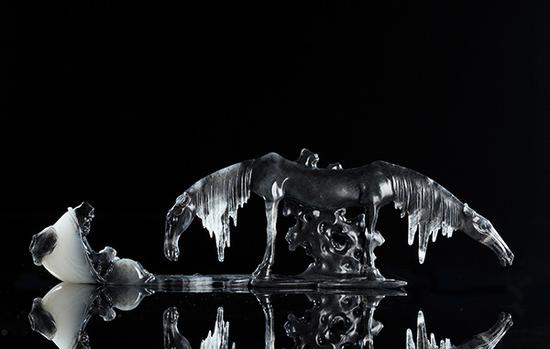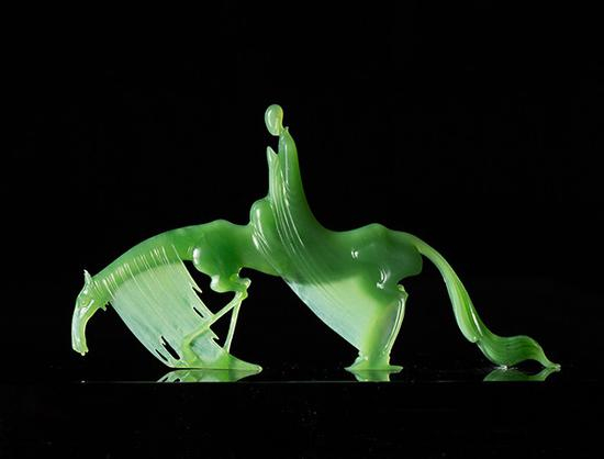 他几乎没有沿袭任何玉雕的传统意象,而是单独塑造了一些超级符号,其中无面目的佛陀形象、瘦马尤其让人印象深刻。
