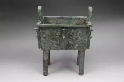 叔虞方鼎2001年1月出土于山西曲沃县曲村镇北赵村晋侯墓地M114(M114、M113墓组是此墓地中年代最早的一组晋侯夫妇墓),通高27、口横18.5、口纵16.5厘米,长方体,平沿方唇,口沿上一对立耳,平底四条柱足,四壁向下渐有收分,四隅和四壁中部各有一条扉棱。四壁饰上卷角兽面纹,以云雷纹填地,柱足饰变形蝉纹,从器形及纹饰来看,铜器年代在西周早期早段。
