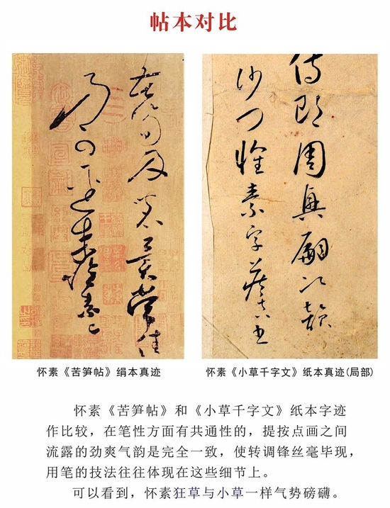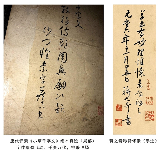 由于时间久远等因素,现存的唐代怀素真迹只有三件:分别是《苦笋帖》、《小草千字文》纸本和《自叙帖》,这些作品的主体用笔与气韵都是一致的,同为怀素一人所写,像这样瘦劲飘逸的旷世名作,后人是无法超越。我们期待在公开展出时,一睹怀素小草“纸本”真迹的迷人风采!