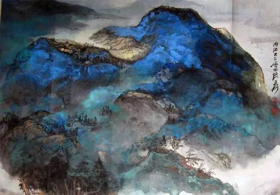 张大千青绿山水画中,大多画的是中国的名山,例如巫山、峨眉山、庐山、黄山等等。张大千青绿山水画用的主要颜料就是青绿色,将山景的苍翠欲滴展现的淋漓尽致,不同与古画中的山水画。