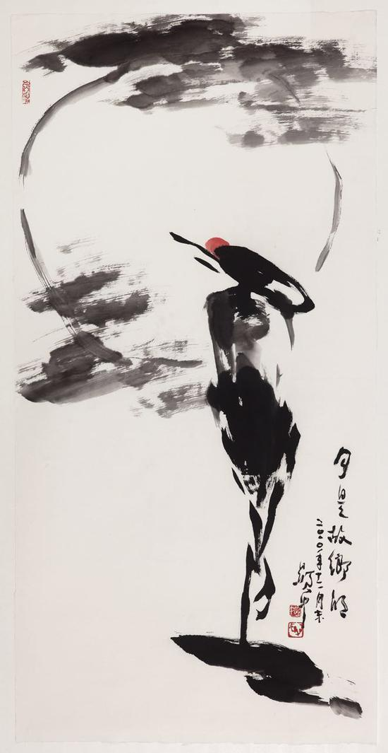 郭显中,巴蜀人,在书画艺术探索和创造的路上特立独行了数十年。关于郭显中先生作品的论述和真知灼见不少。有人喜欢他的鹤,有的褒扬他的猴,有的点赞他的山水之作,这都不错。郭显中先生作品丰富,且思维大胆,方法各异,因此研究者常常迷惑于这个门好还是那个门好。而我欲先从总体特征去把握,我觉得这样能更好把握郭显中作品艺术中蕴含的精神气质。