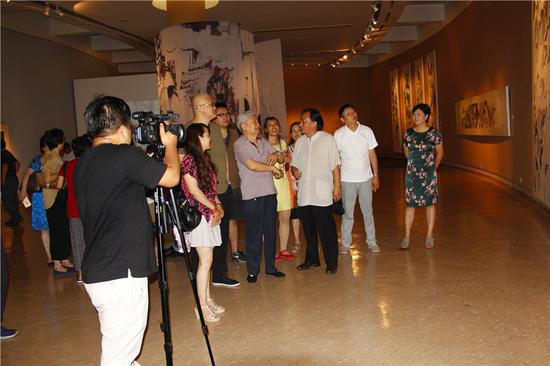 李可染画院院长李庚,中央美院博士生导师殷双喜,李可染画院办公室主任王群 ,淮安市画院院长栾健,海南泰和集团董事长李强,北京温州商会副秘书长王小军,参展艺术家、中央美术学院中国画学院副院长姚鸣京及陕西省美协名誉主席暨中国画学会副会长、长安画派研究院院长赵振川,陕西省美术家协会主席王西京 ,陕西省美术博物馆馆长罗宁, 陕西省美术家协会党组书记吕俊涛、西安美术学院副院长姜怡翔、陕西省美术家协会创评部主任巨石、陕西省美术家协会副主席石丹、西北大学艺术学院院长屈健、陕西省美术家协会顾问、著名画家胡明军、 陕西省美术家协会秘书长刘奇伟,西安市美术家协会秘书长高山, 陕西省美术博物馆副馆长马卫民、陕西省美术博物馆策展部主任穆亚威等出席开幕仪式。 中央美院博士生导师殷双喜主持开幕式。