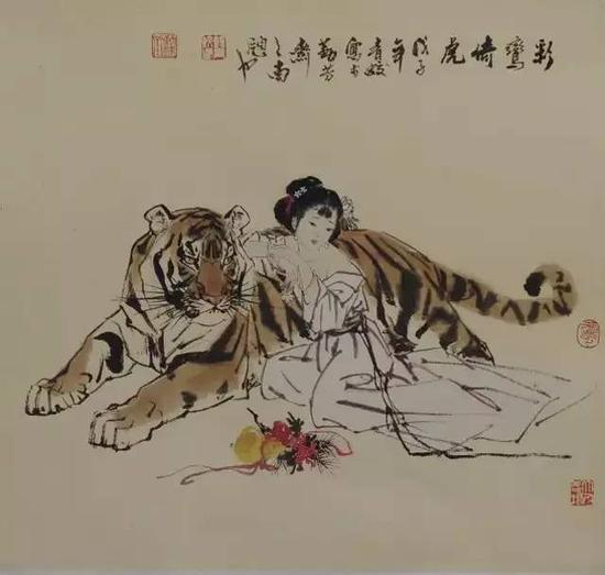 青蛟先生不只是擅长画虎,花鸟鱼虫竹石,山水人物走兽样样精通,是无锡画坛极能画的画家,工笔写意啥都难不倒他,可谓画家中的多面手,手手有招,招招高妙。