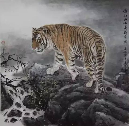 最初听说顾青蛟先生,钻进耳朵里的常常只有三个字:顾老虎。上世纪90年代就在巴黎成功举办了他个人的“百虎画展”。作为国内画虎数得上的名家之一,已出版过十多本画虎题材作品的青蛟先生,当此雅号确是名至实归。