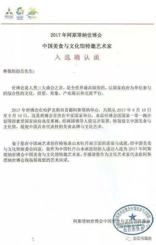2017阿斯塔纳世博会赵岳先生荣获牡丹山水国画金奖