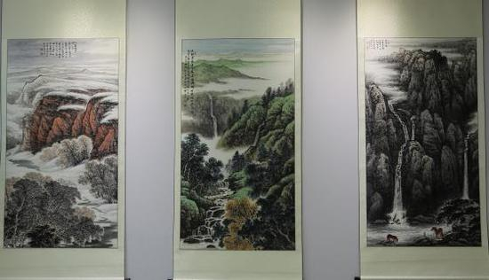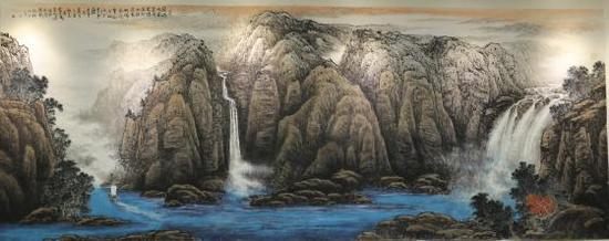 他的国画作品在给人一种大气磅礴的震撼力,给人以清新自然,灵动洒脱的美感,构图饱满,开合得势,虚实相生,干湿浓淡,对比强烈。以宽博与厚重同时,其《天池远眺》《听琴图》《山居图》等作品文气与空灵却表现的淋漓尽致,使人愈觉耐品、耐读易趣无穷。
