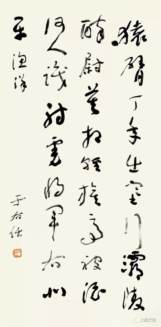 1931年于右任于上海建立草书社,从事历代草书的研讨与整理,并致力于规范草书的书写与推广,寄望藉此节约群众精力及时刻,以增强国家竞争力,反映出儒家经世致用的思维。从碑体书法转型为规范草书的巨大改变,不只照应他早年投身革新的创始精力,也为草书在现代找到新的含义与方向。关于书法,他提出“决不由于姑息美丽而违背天然”的书写观,可说是于右任草书的最佳描写,无论是单字的点画、线条与结构,或是行气与规矩等,都调配得适可而止,到达顺乎天然的最高书学境地。