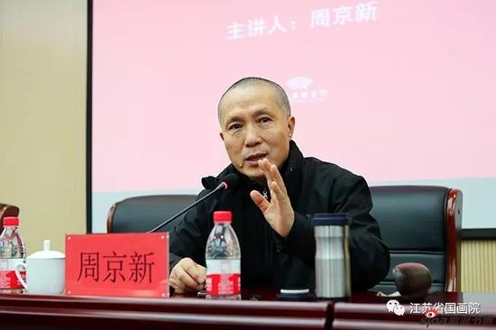 开幕式结束后,周京新院长主讲的“意写新时代 丹青鉴初心”的学术讲座在淮安市美术馆三楼报告厅举办。周院长在讲座中讲述了自己的求学创作之路,他认为,在艺术创作中要量力而行,量材而行,要有自己的真切感受,要把功课中的资料有所取舍的运用到创作中,同时,对待艺术创作要有敬畏之心,要尊重自己的真实感受,选择真切的生活感受。讲座由淮安市美术馆(书画院)馆(院)长栾剑主持,他希望本馆各位书画家认真学习,努力消化,力争创作出有温度、有高度、反映时代的精品佳作。