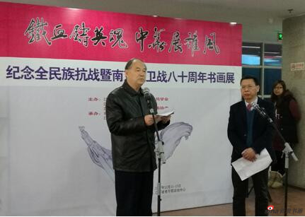 2017年12月11日上午,由江苏省暨南京市黄埔军校同学会、江苏省美术家协会和省级机关老干部书画协会联合主办的《铁血铸英魂,中华展雄风——纪念全民族抗战暨南京保卫战八十周年书画展》在南京隆重开幕。省老领导:原省委副书记顾浩、冯敏刚、原省人大副主任李明朝、原副省长凌启鸿出席,省委统战部副部长马连美、省文联副主席刘旭东、省黄埔军校同学会会长张修齐、省黄埔亲属联谊会会长陈兴汉,南京保卫战知名将领、烈士后代及海内外黄埔亲属,书画家及新闻界人士二百余人参加了开幕式。