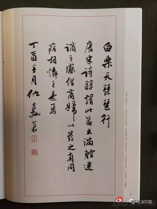 上海书画出版社对于篆书《琵琶行》的装帧设计也极为考究,在开本上采用大8开的形式,计64面,这样更能展现出作者的创作水准,正文采用120克东方雅韵纸四色印刷,线装塑封,又显得极为大方和古雅。另外,在书中还选刊了姜寿田先生的评论文章,可以帮助我们全面解读和赏析仇高驰的篆书创作。
