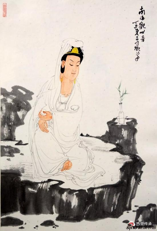 《南海观音》纸本设色 45cm-68cm