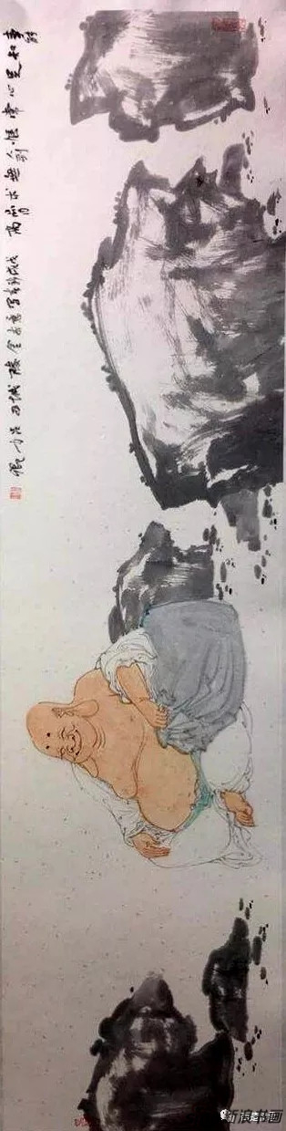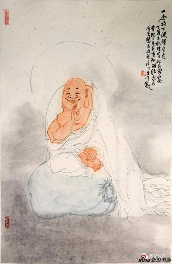 《布袋罗汉》纸本设色 138cm-34cm