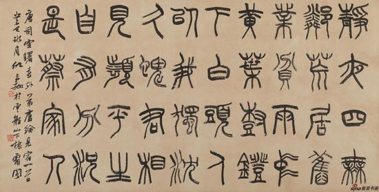 仇高驰,好学之士也。弱冠时即喜染翰,染翰之余,兼攻篆刻,书、印两途,研习有年矣。壬午之秋,高驰以小篆巨帧一轴,参选首届书法兰亭奖,锋芒小试,竞一举夺魁,于是海内书坛皆知彭城仇氏焉。小篆一途,自来以斯、冰遗法为正道,然时下攻篆书者,大都以用笔荒率,结字散乱为风尚,非粗即野,非妖即怪,醇醨之迁,彬彬文质将尽,此可谓避难就易,舍正道而走旁门者也。高驰篆书初法清季邓完白,得邓氏“疏可以走马,密不使通风”结字之秘;次学赵撝叔,获赵氏稳中有变,工中有奇之法;后结穴于近世萧退庵,取萧氏宽展流畅,工丽端庄“蜾扁”之体,再参以秦汉吉金石墨,纵横变化,书篆已见从容含蓄,博大深宏之美,此亦可谓知难而进,敢攀高峰者也。高驰既以篆书见长,而又复攻他书,其隶书,以汉碑为体,以简牍为用,下笔古秀浑厚。其行书则取法王逸少、米元章、黄石斋。大凡工篆隶者拙于行草,此乃结字、用笔不同使然,精能如邓完白者,已为后人所诟病。然高驰行书,已能贯通诸体,融合诸家,落墨心无挂碍,进退裕如,写大字对联气厚貌古,写小字屏条神韵超逸,学书能诸体皆善,随意所适,亦真书家之风流也。
