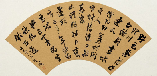 林再成 行书马中锡诗扇面 27cm×48cm泥金 2012年