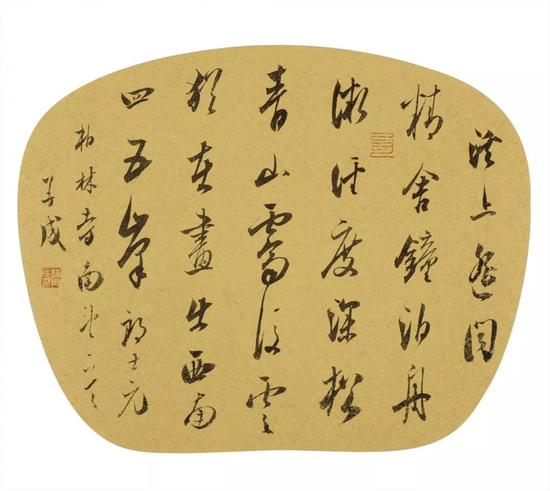 林再成 行书 郎士元诗团扇 20cm×25cm 泥金 2009年
