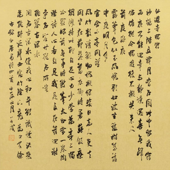 林再成 行书白居易诗斗方 50cm×50cm泥金 2012年