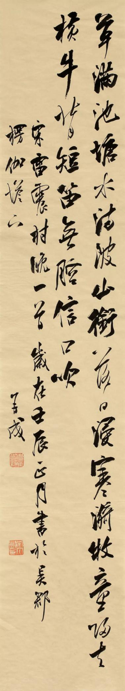 林再成 行书庾信诗轴 80×240cm绢本 2012年