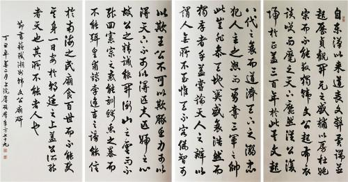 另外,还有詹老在丁卯五月为潮州古城写的《唐韩文公祭锷鱼文》楷书石刻,四百六十余字,既有晋人韵,又有唐人法,还有宋人意,可谓“三代书风的总和”。故以此三幅楷则考察其体式,当可独称为“詹体”而无愧也。