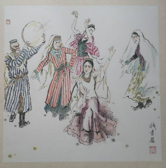 钱贵荪(国画)团结的歌舞为党建献礼