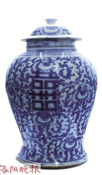 洛阳树威古瓷鉴藏博物馆馆长陈树威说,青花喜字将军罐上绘缠枝莲纹和“回”字纹,表达了人们对美好生活的向往:“喜”字配缠枝莲纹,寓意喜事不断;“回”字纹在罐子肩部字字相连,寓意富贵不断头。