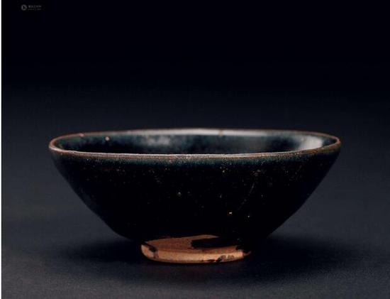 盏也作琖,是一种比碗小的器皿,宋代文献亦称为瓯或碗。宋代在饮茶过程中增添各种仪式,“斗茶”活动日益盛行,这时饮茶已不再是为了满足简单止渴的需求,而是达官显贵、文人雅士甚至贩夫走卒普遍参与的一种社交行为。为衬托白色的茶汤以便观察茶色,达到评判茶品质高下的目的,黑釉的茶盏最为方便,故而黑釉茶盏一直为斗茶者所偏爱。在宋代文献中关于黑釉茶盏的记载颇多——