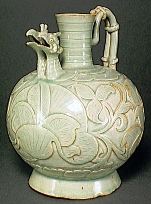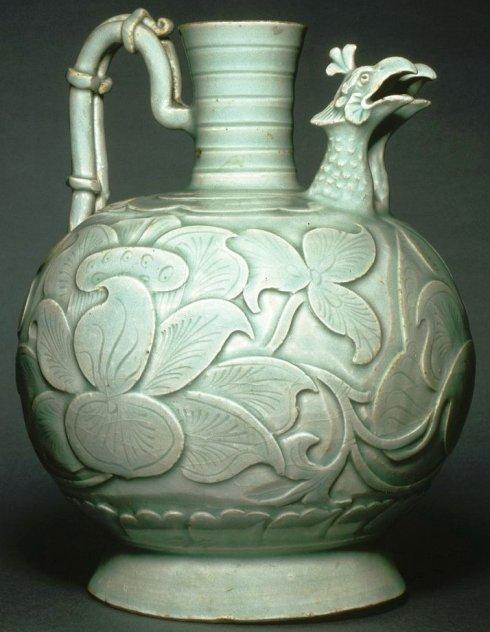 从法国吉美博物馆辽竹节颈双凤首流剔刻写意牡丹仿皮革执青瓷壶被误断代为宋耀州窑青瓷浅谈辽宋瓷的分辨及断代