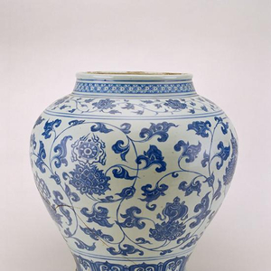青花八宝勾莲大罐,明景泰,高43cm,口23cm,足24cm。
