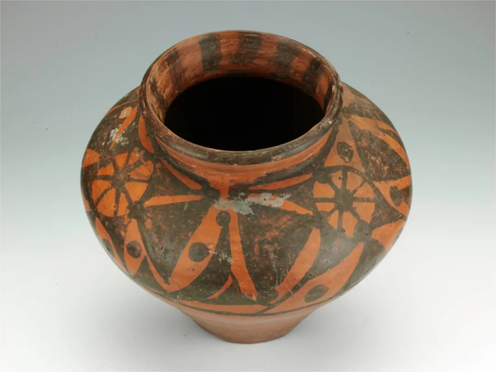 庙底沟文化 圆点三角勾叶纹彩陶罐
