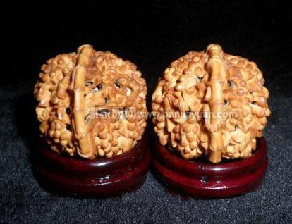 给核桃上油,最好选北方的山核桃油,但一般难于买到。刷油也可以 用质量好的橄榄油代替,目前文玩圈里较为常用的还有质量好的婴儿油,这些用来保养核桃、橄榄核、金刚等等,均比较好。当然,最好的还是自己身上的油脂,经 常把玩,就不用过分上其他油。切记不能刷发粘的食用油,影响核桃的手感与颜色。