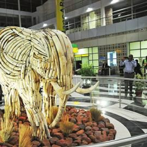 象牙大象雕塑亮相博茨瓦纳首都机场