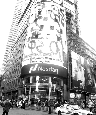 经济日报讯(记者陈颐) 从9月21日起,美国纽约时代广场纳斯达克大屏幕滚动播出中国书法宣传片,引发美国民众和全球游客的广泛关注和好奇。该宣传片将在纽约时代广场播出一个 月。《经济日报》记者在北京采访了该宣传片中80岁的著名左笔镜体书法传承人孙浩茗,他说,美方为接待习主席到访,安排播出中国书法可谓独具匠心。中国书 法博大精深,他所开创的镜体书法具有“新、奇、巧、美、难”等特点,极具艺术观赏性、稀缺性和收藏价值。此次中国镜体书法在美国播出,既彰显了中华传统文化之美,也体现了中美两国人民的友谊。