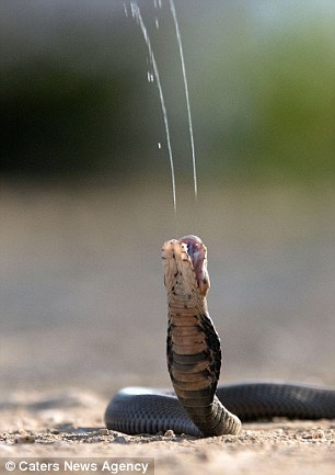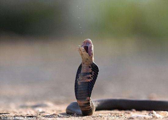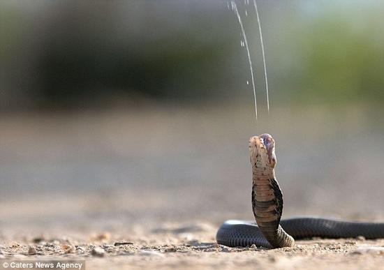 摄影师抓拍致命的眼镜蛇喷射毒液瞬间