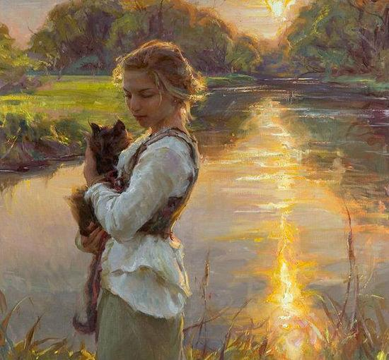 (图为“In Her Care”,关怀)Daniel F.Gerhartz,美国画家,出生于1965年。自幼立志学画,就读美国芝加哥艺术学院,他的作品具有浓厚浪漫写实主义风格,表现题材广泛,犹以女性题材为最多,无论是日常生活中休息,沉思的少女还是牧场田园诗般的风景和人物都令人印象深刻。