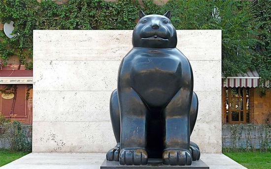 哥伦比亚艺术家费尔南多·波特罗(Fernando Botero)一贯以肥胖造型的绘画和雕塑著称,他作品无论男女老幼,每个对象的体型都胖胖的,就连哥伦比亚总统、基督、圣母也难逃肥胖的命运。波特罗解释说他画的不是胖子,而是想表达一种体积带来的美感和塑性。(图为“Cat”,猫)