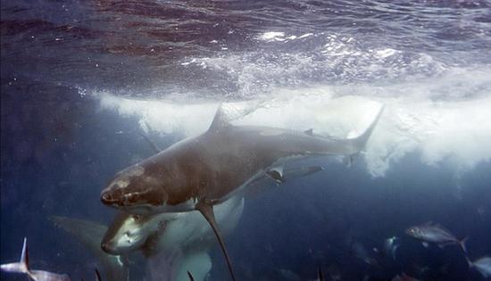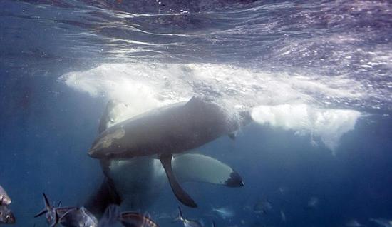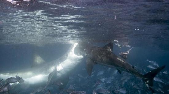 摄影师水下偶遇大白鲨同类相残