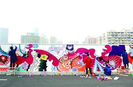 沪上最长涂鸦墙秀画师佳作 成美术馆户外公共展厅