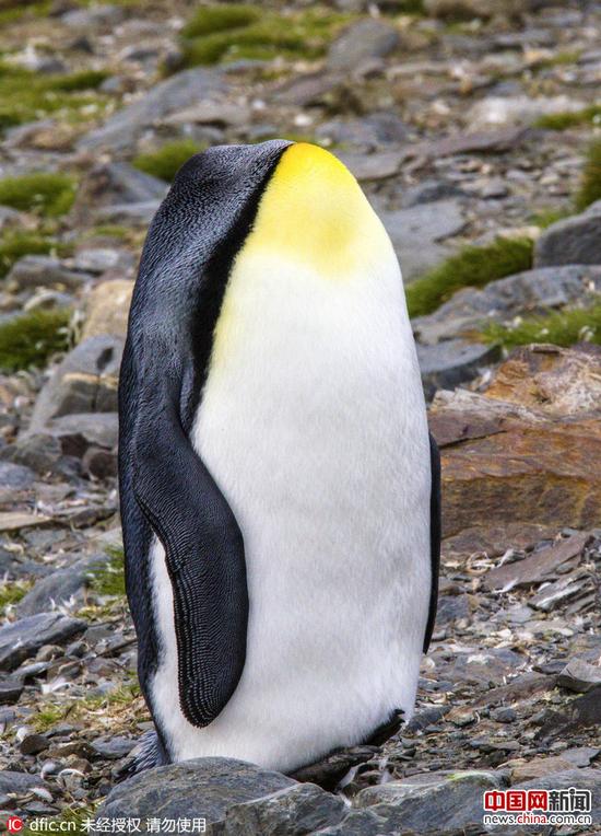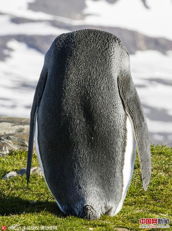 2016年5月6日报道(具体拍摄时间不详),南极南乔治亚岛,澳洲53岁的摄影师Robert Ian Fraser在南极洲巡游时,正巧拍下了一组“无头”的企鹅照片。Robert说:“在近50万只企鹅中间,‘无头企鹅’比你想象的要常见的多。”企鹅常 常把自己的头藏起来为了给自己挠痒,看上去就像是没有头,很是诡异。(东方IC)
