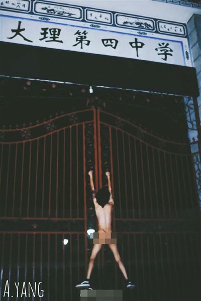 昨天凌晨0点50分,网友“便便是个野孩子”在微博连续发布两组共18张出位照片。照片中,一对情侣全身赤裸,在人民路大理第四中学等建筑前做 出不雅举动。拍摄时间为深夜,其中一张照片拍摄时有急救车经过。微博同时配文:“每个城市都会有人民路,于我而言大理的人民路更加亲切。很多人都会问,他 们都走了,为什么你来来回回这么多次,还是在人民路晃悠?”