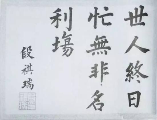 皖系军阀的首领段祺瑞,出身贫寒,少时曾在私塾读书,后来接受过西方教育。书法涉及正、草、行、隶诸体,其行楷最见功力。我们看看段氏书法