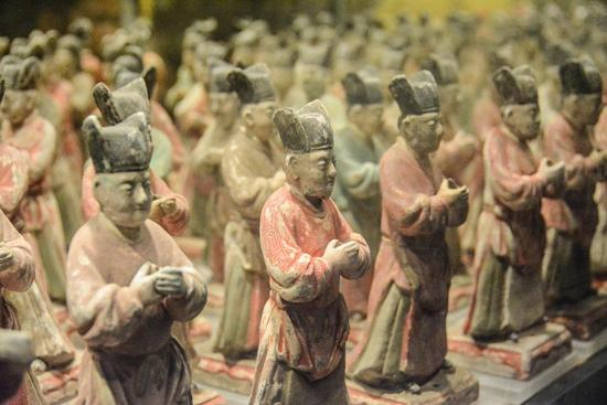 据了解,彩绘陶仪仗俑群是明秦简王死后随葬的依仗队。