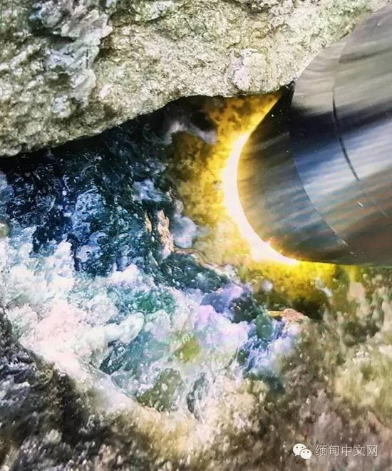 这种类型的玉原石在当地被称为“隆署玉原石”。缅甸珠宝玉石管理部门的副局长称,目前暂时无法估算出玉石的具体价值,但从玉原石的外壳观察,水色相当不错,相信玉石的质地也会非常好。