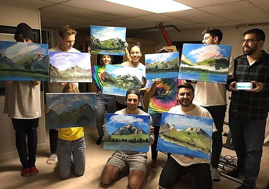 目前,克里斯发布的照片已被点赞10.9万次,转发3.3万次。据悉,克里斯在其卧室举办了此次派对。他给受邀参加的朋友播放了鲍勃罗斯的绘画教学视频,并给他们发放了颜料和画布。参与者们随意坐在地板上,认真地跟随视频创作。