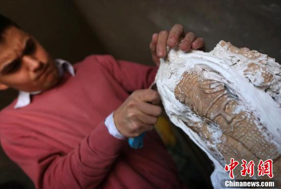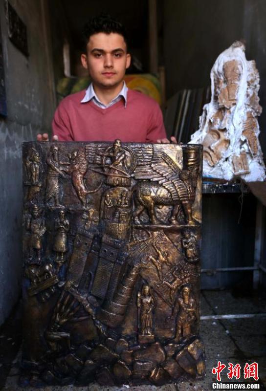 伊拉克18岁难民复制亚述文明雕塑 原版已被毁