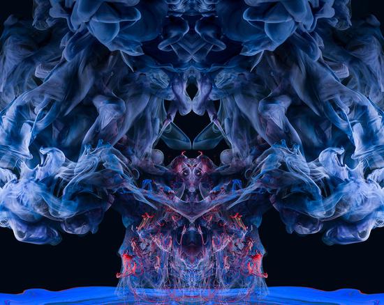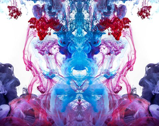 国际在线专稿:美国的一位艺术家用墨水、染料和绘画颜料在水中作画,并用照片相机将水中的成像拍了下来。这些照片发表在美国BoredPanda网站,每一幅都自然呈中间对称,没有经过任何的电脑处理,鲜艳的颜色加上怪异的造型,会让人感觉到这是一个鬼魅般的世界。因此,这位艺术家将这些照片作为自己作品展览的一部分,并命名为“恶魔”。 他认为每个人看这些照片的感受和解读是不一样的, 因为每个人的心理状态是不一样的。