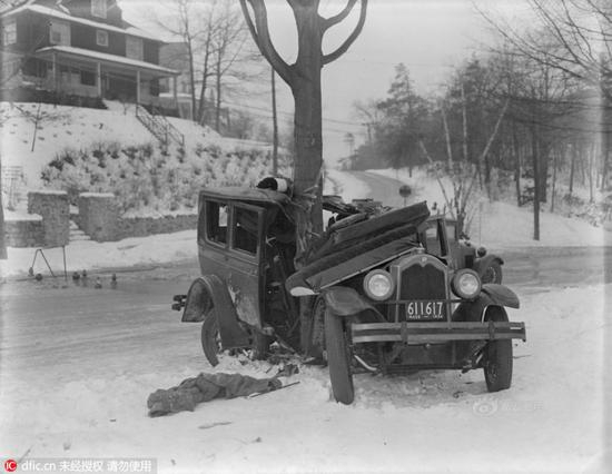 黑白照片记录美国近百年前的奇葩车祸 新浪图片 2017.04.2414:51 关注 (具体拍摄日期不详),这组有趣的图片向我们展现了为何十九世纪三十年代的马虎司机被认为是全美交通安全最大的隐患和马路杀手 在这些照片由《波士顿先驱旅行报》(Boston Herald Traveler)的记者Leslie Jones拍摄的照片中,有的撞穿了建筑的外墙,有的撞上了树,还有的甚至冲进了路边的房屋。 图为珍贵的黑白照片记录美国近百年前的奇葩车祸。